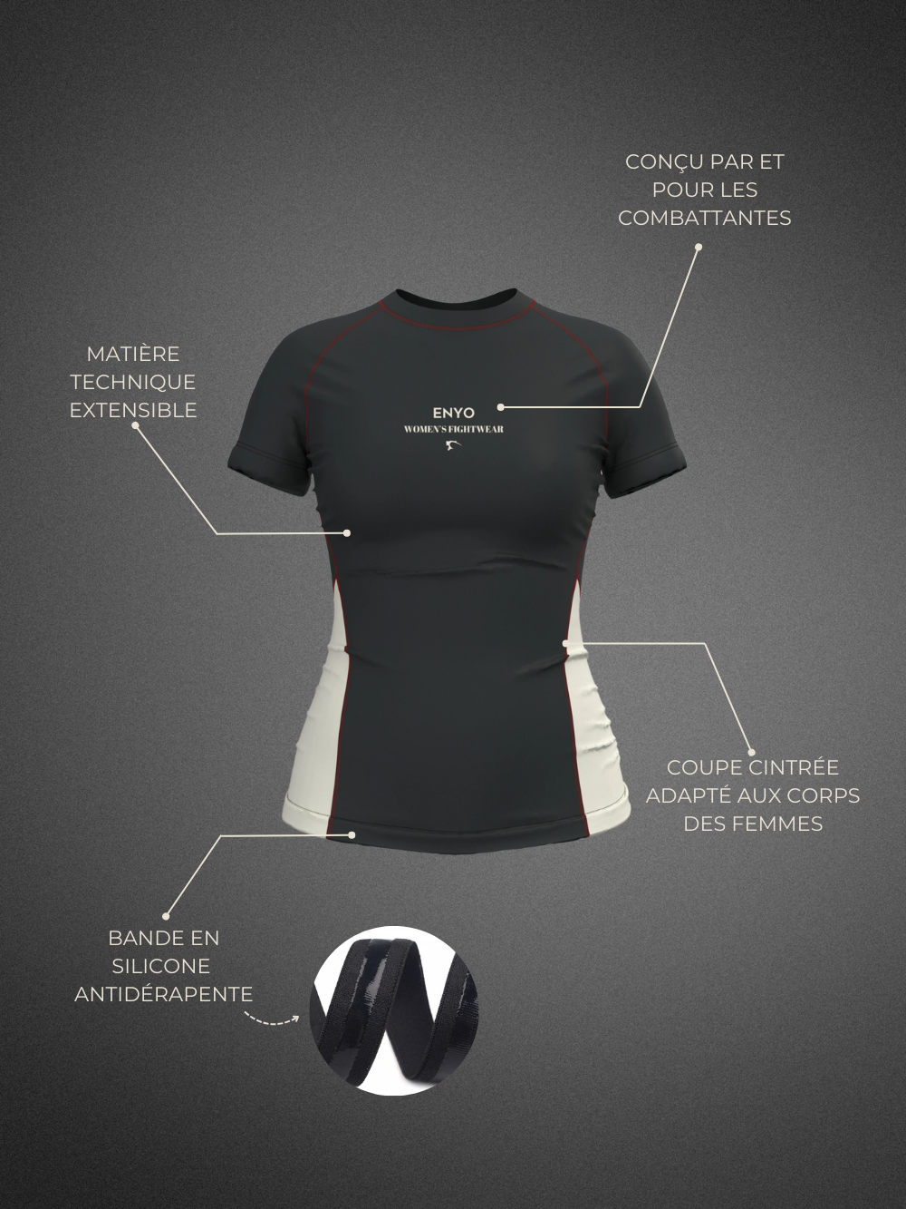 Pensé pour les entraînements les plus exigeants, notre rashguard épouse parfaitement les formes tout en offrant une liberté de mouvement totale. Son tissu technique assure un maintien optimal et favorise l’évacuation de la transpiration. Idéal pour les sports de combat : MMA, JJB, grappling ou encore boxe. Design sobre et puissant, adapté à toutes les combattantes.